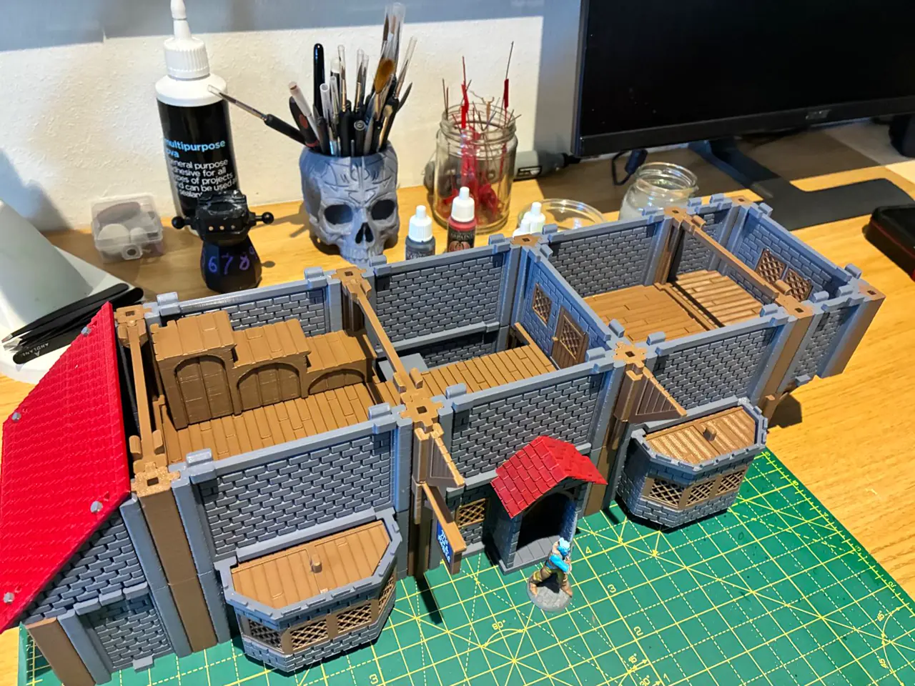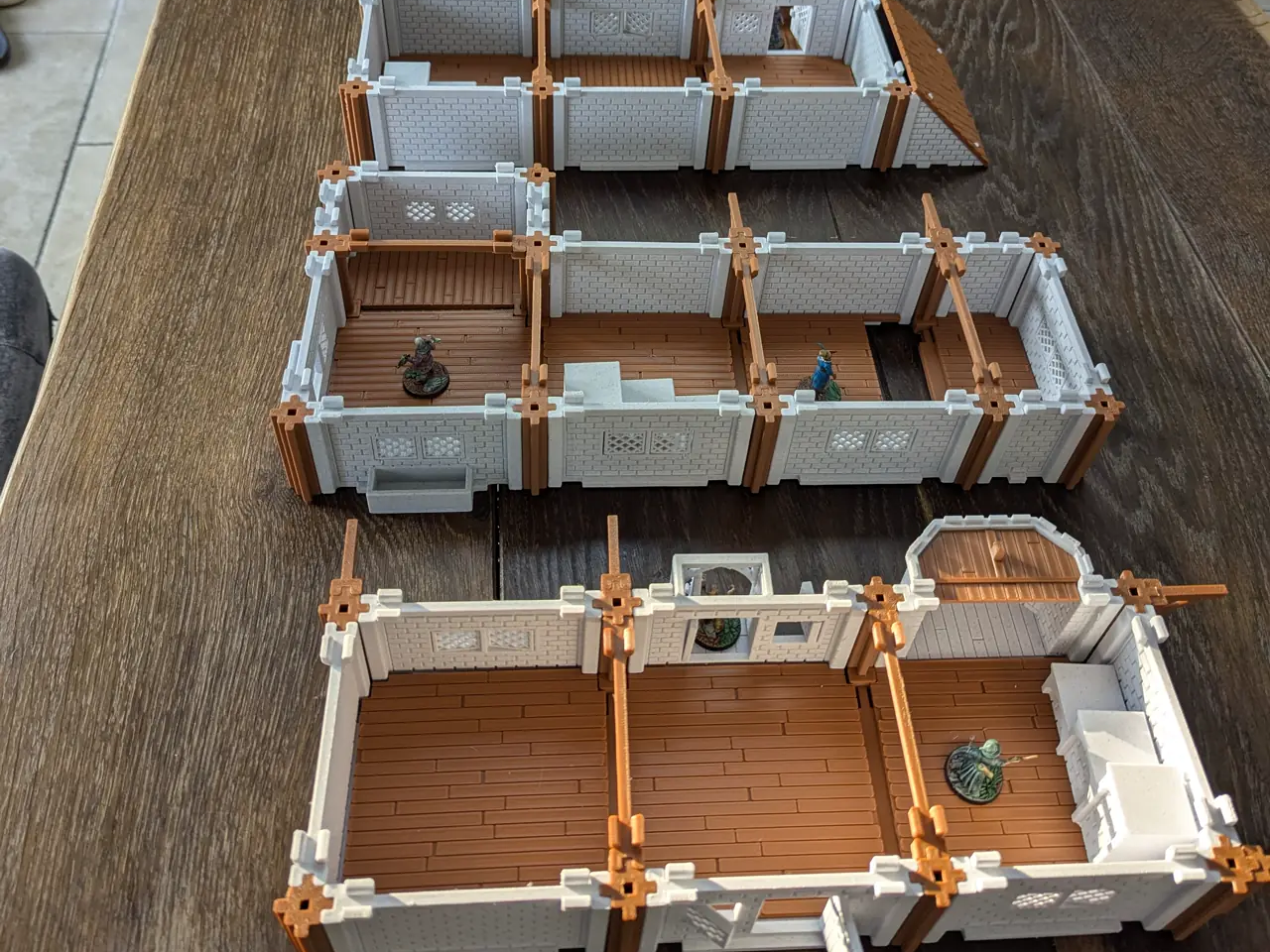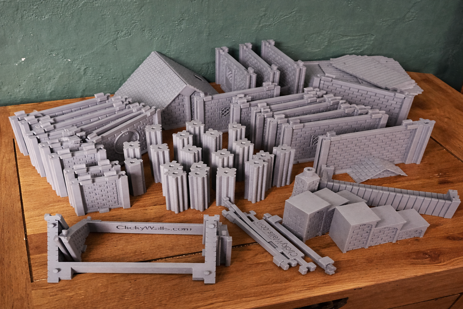 I like the versatility of the ClickyWalls tile system. They print up quickly, and require less filament vs some of the other tile systems that we have used in the past. Storage is also ideal, because the pieces easily break down into smaller collections to be used again in the future. You can get fairly creative to make your own fantasy pieces, with this system. There are no annoying clips to deal with, because the joining system is already built in to the tiles. When I had a small technical issue with printing part of a door for a tile, the author was extremely responsive and modified/improved the design within hours. They are extremely responsive and hands on with their community, in their customer forum.