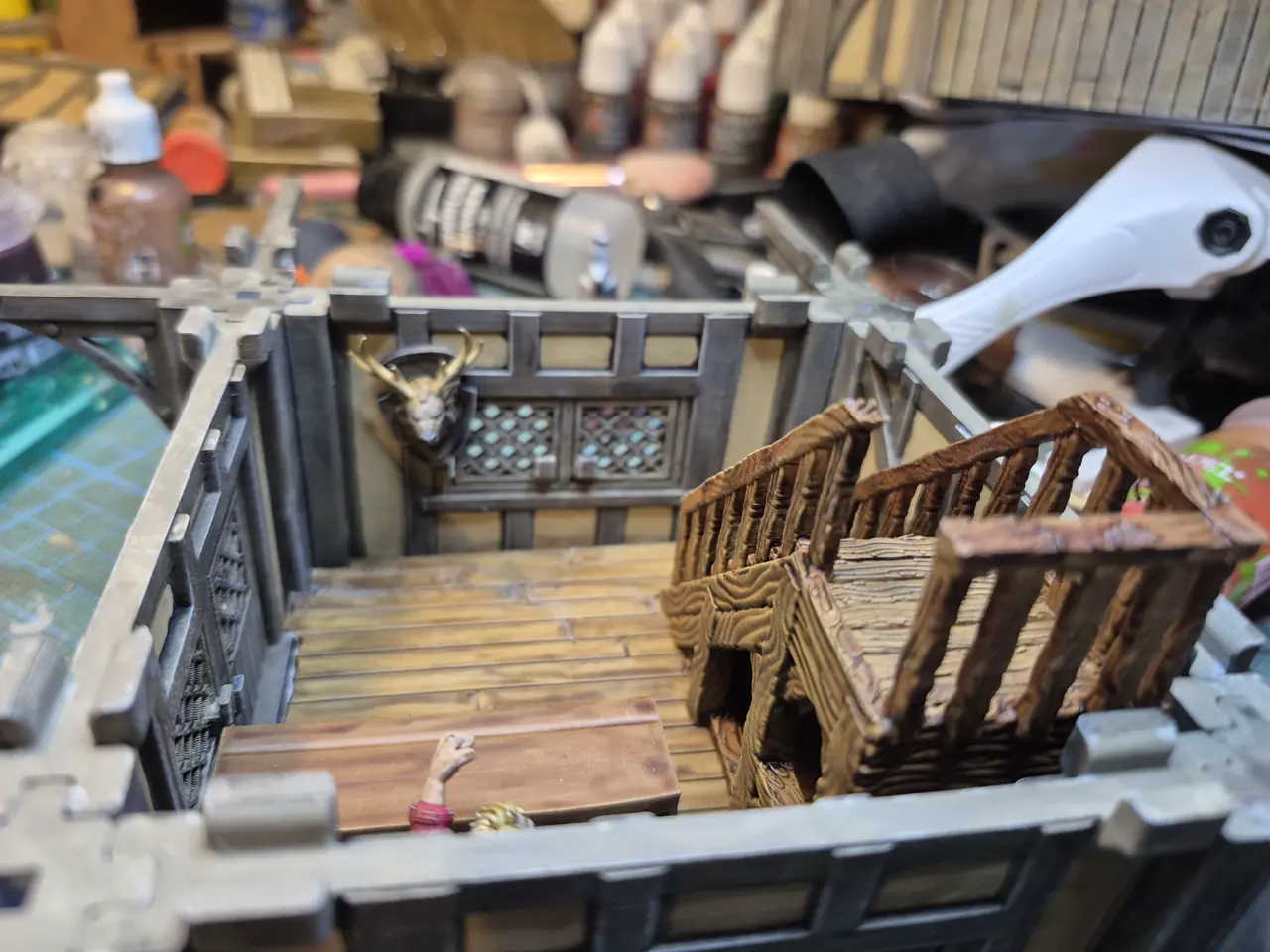 A good example is staircases. True-scale stairs look great, but they’re almost impossible to play on — miniatures slide off or can’t be placed at all. ClickyWalls stairs are deliberately chunky, allowing miniatures to stand securely on each step, making height, movement, and advantage clear and easy to judge during play.