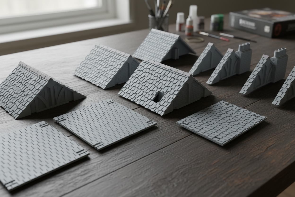 Rough Roofs brings a more rugged, medieval feel to your town with oversized, crooked slate tiles and chunky ridge caps that look properly old and hand-laid.